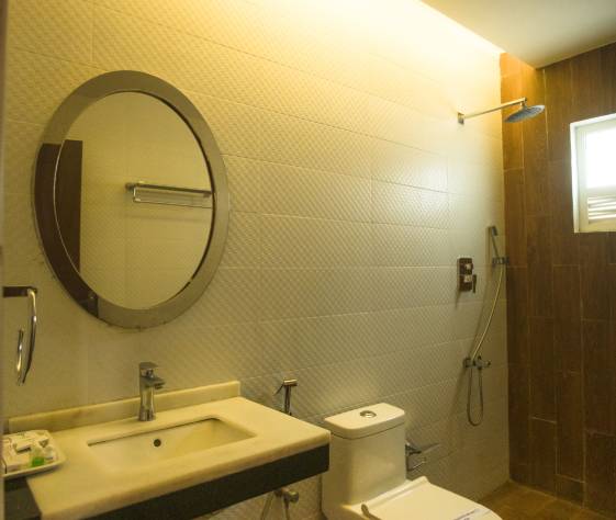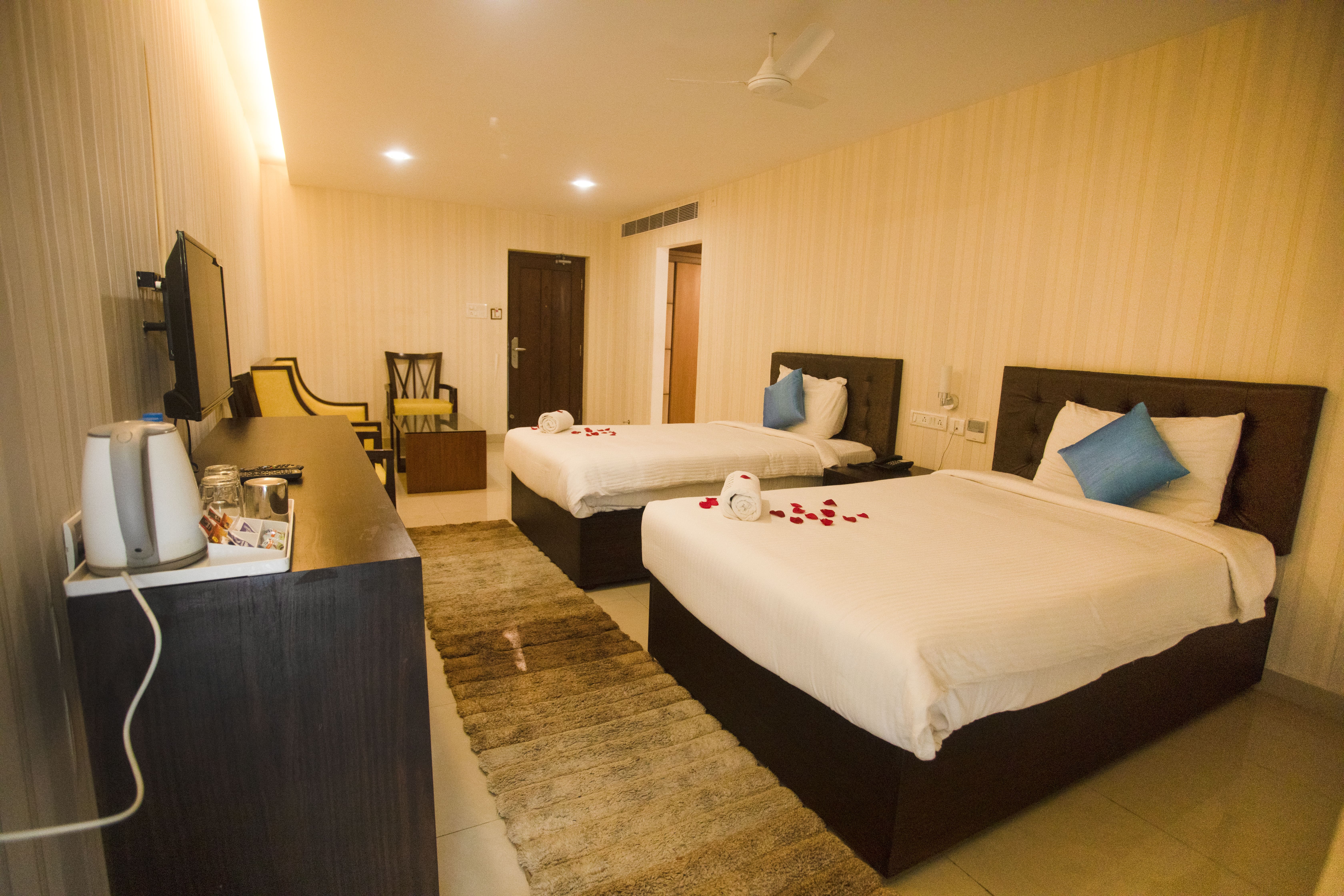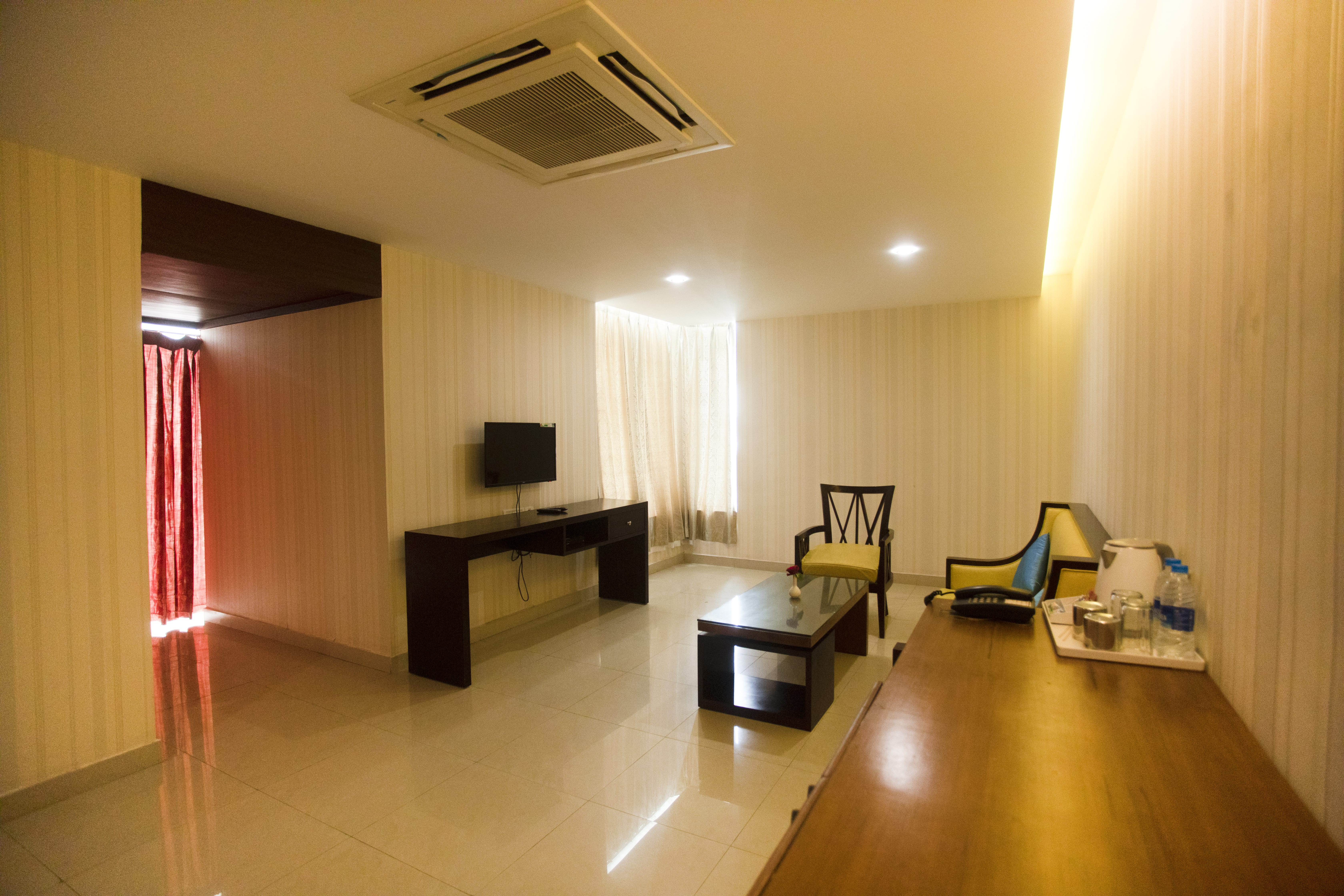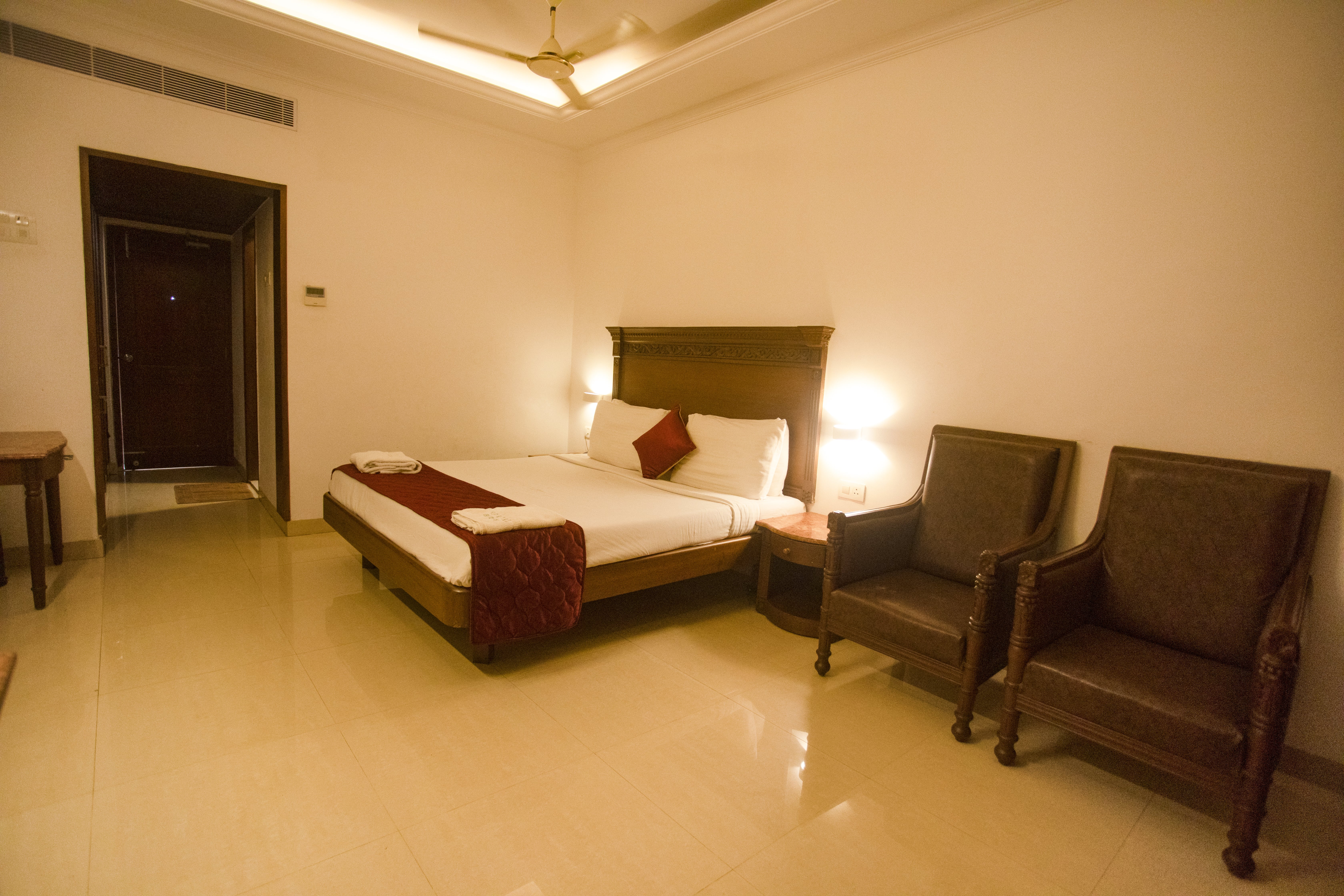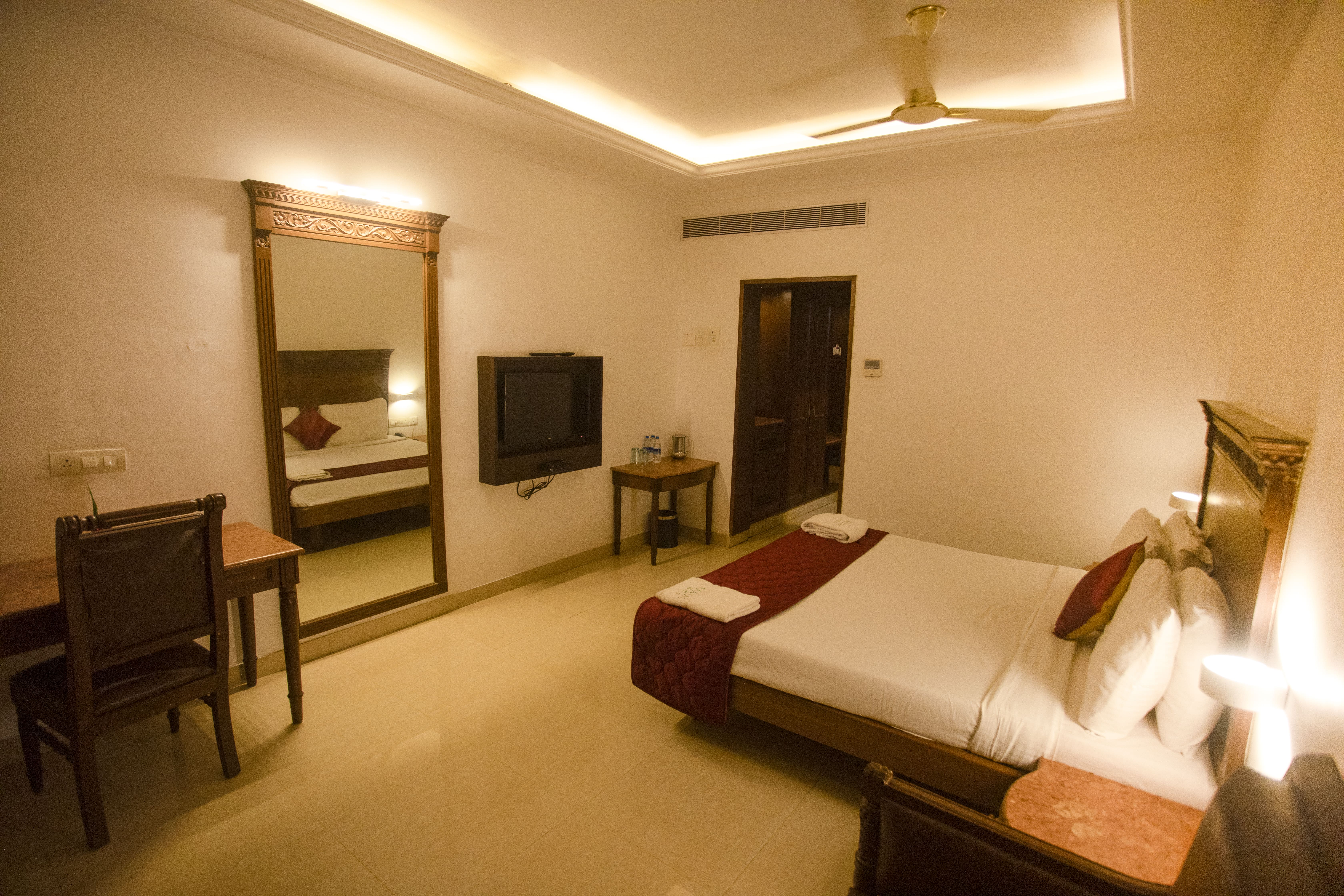 Spread over an expansive 400 square feet, air-conditioned and tastefully furnished this double room suite consists of a bedroom, Spacious drawing cum dining room and a dressing area. The washroom provides a separate standing shower and a bathtub.